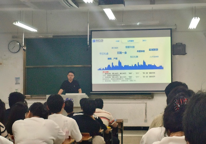 招聘会伊始,万志兵副院长对我武生物的到来表示热烈欢迎,他向企业介绍了学院2026届毕业生的专业分布、培养特色及实践能力,同时鼓励在场毕业生珍惜优质企业资源,主动展现专业素养与求职诚意,积极把握就业机遇。我武生物招聘负责人则通过PPT演示,详细解读了企业发展历程、核心业务领域、本次招聘岗位(涵盖研发、生产、销售等多个方向)、薪资福利体系及职业发展路径,让毕业生对企业及岗位需求有了全面且深入的了解。