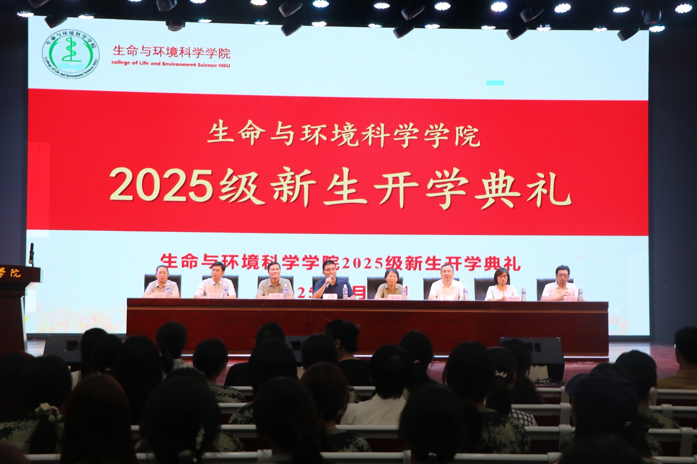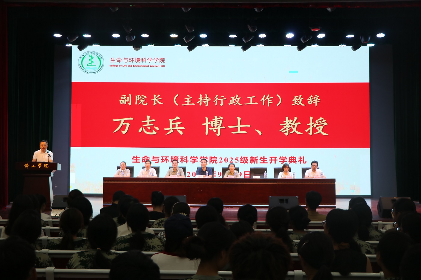 金秋送爽,丹桂飘香。9月29日19时,生命与环境科学学院2025级新生开学典礼在大学生活动中心隆重举行。典礼由学院副院长万顺利主持,学院领导班子成员、各教研室主任、实训中心及实验中心主任、新生辅导员与全体2025级新生齐聚一堂,共同见证新生们开启大学生涯的重要时刻。
