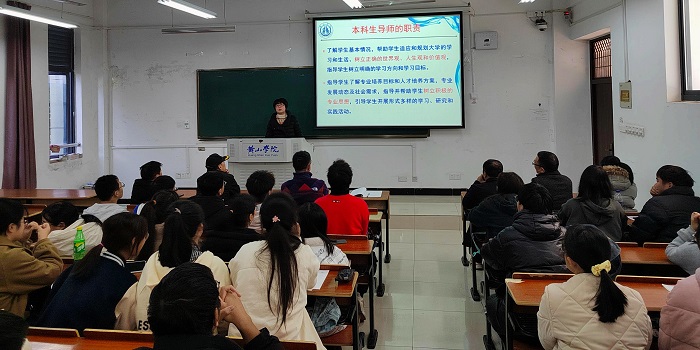 12月15日中午,在1203教室,生物技术专业召开了2021级本科生导师见面会。生物技术教研室全体教师、21级生物技术班级辅导员和全体学生参加了见面会。见面会由生物技术教研室主任胡晓倩主持。