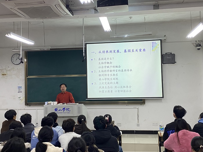 2025年11月23日晚,生命与环境科学学院在文渊楼1201教室举办专题报告会。活动特邀校关工委 “五老” 报告团成员、学院生物科学专业荣退教授唐鑫生主讲,学院副院长(主持行政工作)万志兵教授主持报告会,生物科学教研室主任李伟教授、黄铭博士及 2024、2025级生物科学专业全体学生共同参与。
