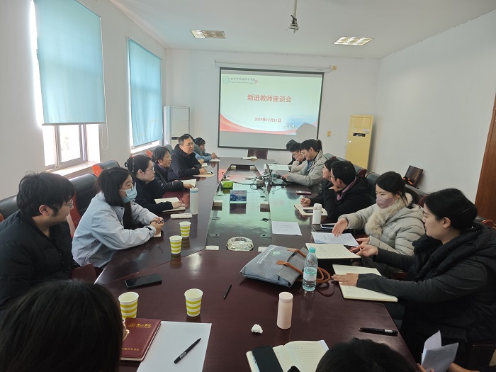2025年12月11日,我院在三楼会议室召开新进教师座谈会,学院领导和全体新教师参加会议,学院党委书记潘健主持会议。