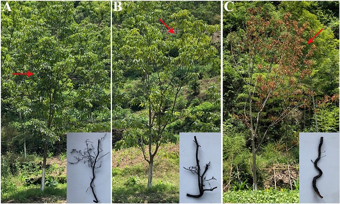 山核桃是我国安徽歙县、宁国及浙江临安、淳安等地的特色经济树种,其果仁富含油脂、蛋白质和矿物质,风味独特且营养价值极高,是当地农户的重要收入来源,已形成规模庞大的特色产业。然而近年来,不明原因的根腐病在主产区蔓延,发病率最高可达90%。患病植株表现为叶片黄化、枯萎、早落,根系皮层脱落、木质部褐变,最终整树死亡,给农户造成惨重经济损失,严重威胁山核桃产业可持续发展和区域生态稳定。此前研究虽推测细菌菌群失衡可能与病害相关,但具体致病元凶始终不明,导致防控工作难以精准开展。
