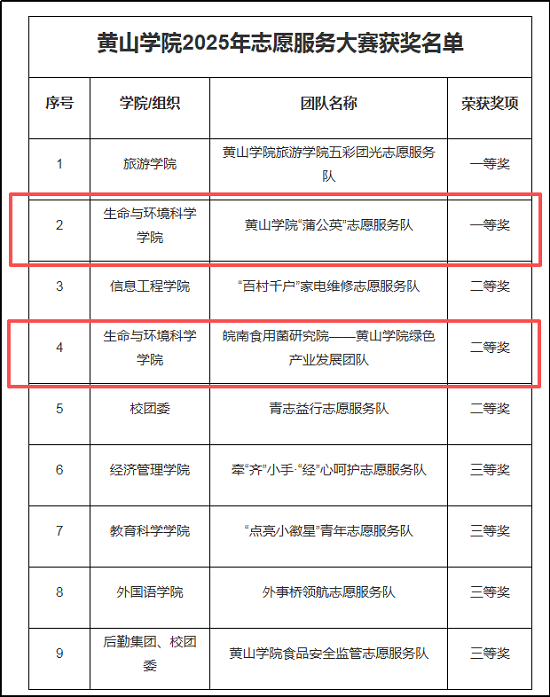 一直以来,生命与环境科学学院始终坚持志愿服务与学科建设、社会实践、人才培养深度融合,引导青年学生将课堂知识转化为服务社会的实际能力,在实践中培育学生的社会责任感与专业使命感。下一步,生命与环境科学学院将以此次大赛为契机,进一步总结两支获奖团队的成功经验,完善志愿服务项目培育与长效管理机制,着力打造一批兼具专业特色、社会影响力与可持续性的志愿服务品牌。学院将继续引导广大青年学生以获奖团队为榜样,立足专业优势,聚焦社会需求,在民生服务、乡村振兴、生态保护等领域贡献青春力量,用实际行动践行志愿服务精神。