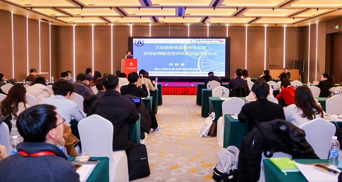 会上,胡晓倩教授作了题为《大豆发酵食品徽州毛豆腐活性肽降脂活性评价及功能产品研发》的主题报告。报告系统阐述了徽州毛豆腐活性肽在抗氧化、降血脂等方面的生物活性,并进一步介绍了基于活性肽的功能产品开发路径及毛豆腐稳定性生产工艺的关键技术,为传统徽州毛豆腐的产业升级与高值化利用提供了科学依据与创新方向。报告分享的内容展示了我院教师依托地方特色食品徽州毛豆腐,将科研创新与实践应用相结合的鲜明特色与扎实积累。