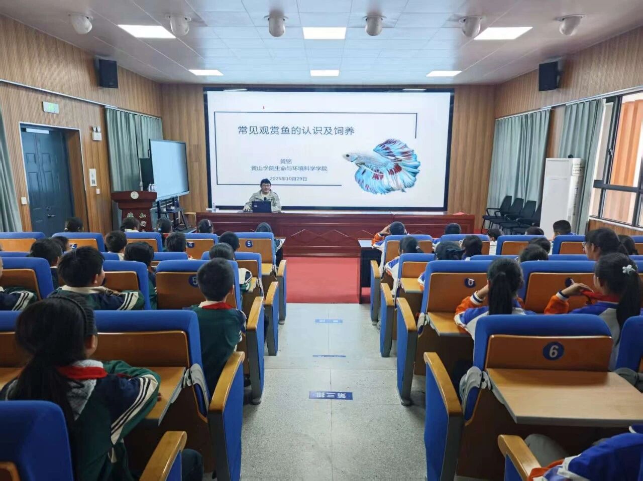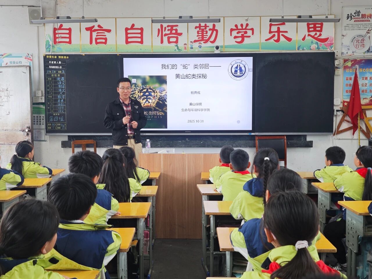 自2025年10月起,学院团委积极响应黄山团市委、市少工委号召,选派洪新华、于超、杨典成、黄铭四位青年教师组成宣讲团,围绕大气科学、生物多样性、生态保护等主题,设计8场特色科普课程。从屯溪五中启动,陆续走进黄山市特校、屯溪一中、百鸟亭小学等多所学校,以生动易懂的形式传递科学知识,激发青少年对自然与科技的兴趣。活动期间,授课教师被多所学校聘为“科技辅导员”,搭建起长效科普协作平台。
