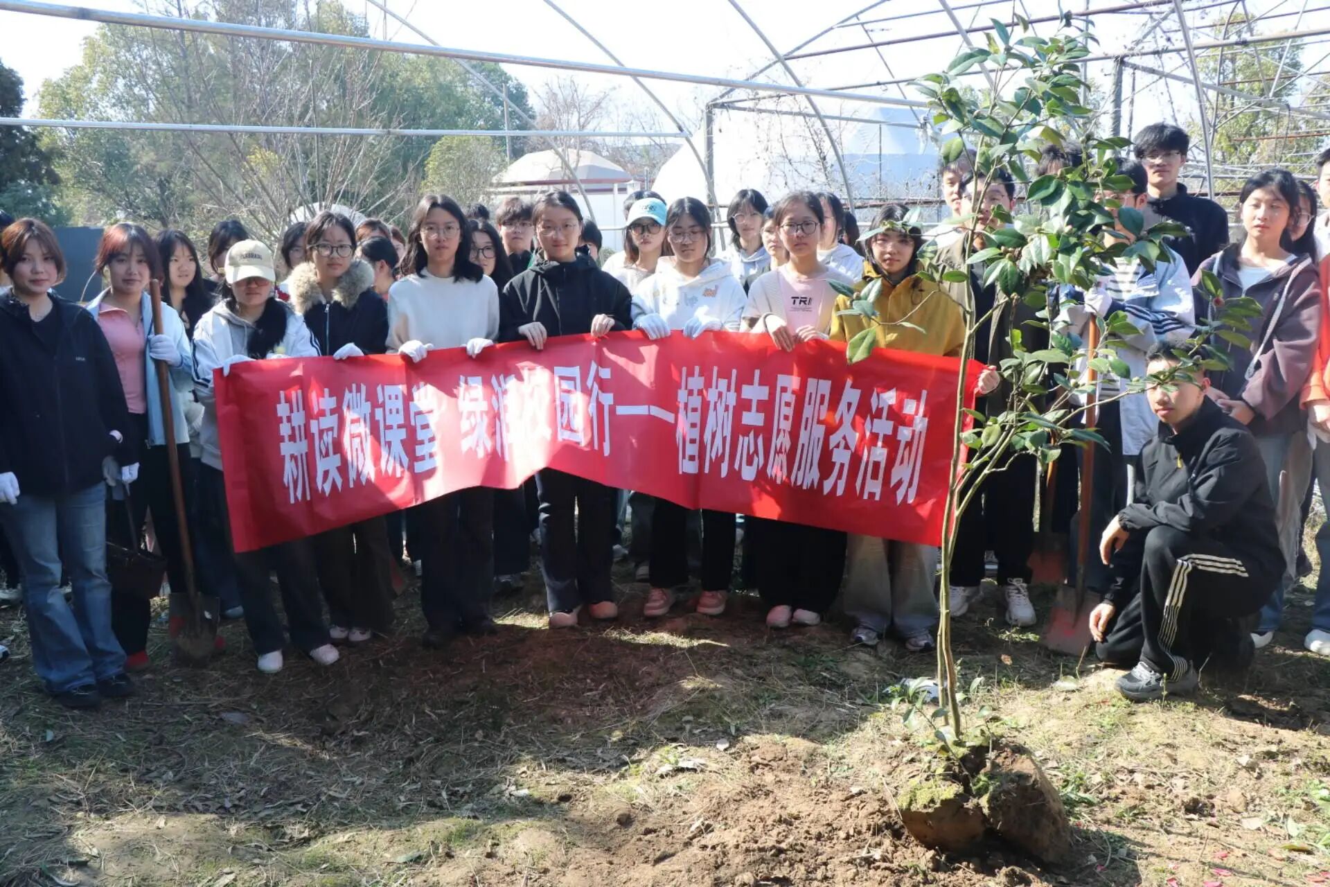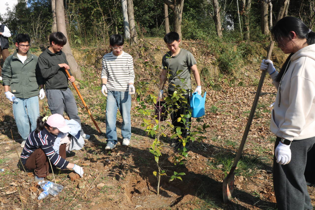 恰逢第48个全国植树节,学院紧扣“耕读教育”育人主线,联合旅游学院开展“耕读微课堂 绿润校园行”植树志愿服务活动,将专业教学、劳动实践与生态育人有机融合,以青春之力为校园添绿增彩。活动中,鲁强、王秋阳两位老师结合树种生长特性,围绕“科学栽种、水肥管理、后期养护”等关键环节开展沉浸式精细化教学,把生态环保理念深度融入实操技能培训,让理论知识与实践操作相辅相成、同频共振。实践环节里,学生分工协作完成植树工序,为树苗悬挂认养牌建立长效养护机制,在劳作中厚植生态情怀,上好劳动思政实践课。