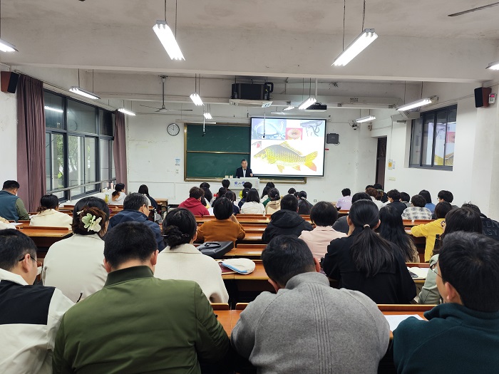为深化教育教学改革,扎实开展教学思想观念大讨论,充分发挥优秀教师的示范引领作用,4月9日,黄山学院生命与环境科学学院在文渊楼1104教室开展《动物学A2》示范课观摩活动。本次示范课由资深教师王德青主讲,讲授内容为“两栖纲”专题,学院党委书记潘健,副院长(主持行政工作)万志兵、副院长李伟以及全体教师到场观摩学习。