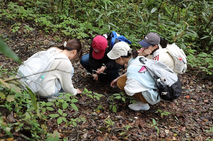 此次实习由带队教师精心规划实习路线、明确实习目标、细化任务分工,全程指导。实习聚焦土壤与气象两大核心内容,在土壤实习环节,教师结合齐云山丹霞地貌的独特性,现场讲解了丹霞地貌的起源与演化历程,细致剖析了不同类型丹霞地貌的岩石分化、侵蚀规律及地形构造特征,引导学生近距离观察丹霞岩体的形态特征,理解地质作用对土壤形成的深刻影响。气象实习环节,围绕“气象要素与森林的相互作用”,教师详细讲解了气温、湿度、辐射、气压等主要气象要素的观测方法,指导学生进行各类气象观测仪器的操作规范,带领学生开展系统性观测与探究;深入理解气象要素对森林生长、分布的作用机制。