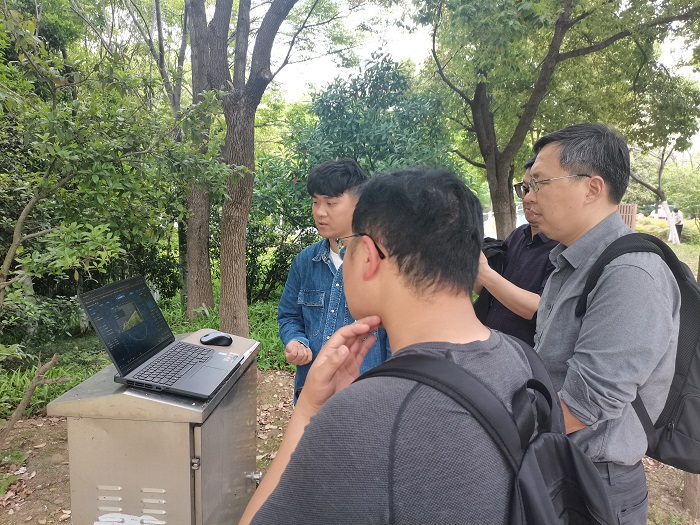 随后,团队还参观了博景生态股份有限公司四里渠滨水公园项目现场,了解了其在智慧园林项目上的实践应用。该公司技术人员现场展示了无人机智慧园林养管系统,通过无人机对园林绿化项目进行实时监测、评估和反馈,实现了园林项目的科学管理和高效运行。