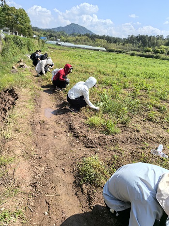 活动现场,村民与大学生们分工协作、密切配合。大家手持农具,弯腰俯身于中草药苗垄间,仔细辨认白术幼苗,认真铲起密度较大的幼苗,同步移栽到生长稀疏的地垄。尽管春日阳光渐烈,同学们不畏辛劳,动作日渐娴熟,并分工明确,高效合作。经过数小时的忙碌,原本疏密不一的药田变得整齐又有条理,幼苗在微风中舒展叶片,展现出勃勃生机。同学们在劳动中体悟“劳动最光荣、劳动最崇高、劳动最伟大、劳动最美丽”的真谛,用实际行动迎接五一劳动节。